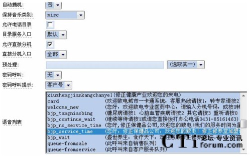 可以根據其自身業(yè)務的特點,設定多個處理呼入電話的隊列。針對每個隊列,都可以設定固定接聽坐席和動態(tài)接聽坐席,以便根據來電情況,靈活調整某個隊列接聽話務員的人數。用戶還可以方便的設定每個隊列的等候音樂,隊列位置提示以及溢出路由。針對隊列中的各個坐席,用戶還可以靈活設定振鈴的策略。