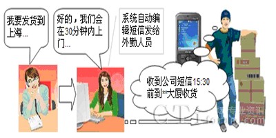 外勤短信通知。客戶電話下單,貨品規(guī)格重量記入數(shù)據(jù)庫,下單完畢,客服人員選擇片區(qū)取件員,輕輕一點,客戶資料及貨物資料全部發(fā)送至取件員手機,不會遺忘,不再混淆。