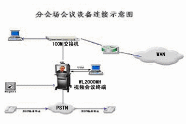 在各分會場,提供100M快速交換以太網(wǎng)端口連接分會場會議終端WL-2000MH,以上設(shè)備分別通過綜合信息網(wǎng)提供的100M快速交換以太網(wǎng)接入主會議系統(tǒng)網(wǎng)。另外,在分會場預(yù)留一條電話備份線路,也可以用音頻撥號方式撥入,用參加視頻會議。