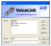 - 簡易且方便的管理:在現(xiàn)有的TCP/IP網(wǎng)絡(luò)的條件下,管理員或主管可以在任何地方遠程登陸到Voicelink服務(wù)器上,來進行錄音回放和管理。