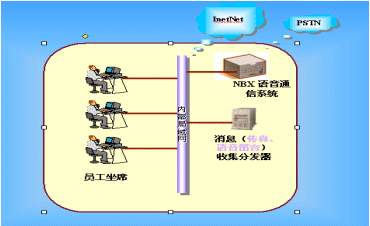 3Com NBX統(tǒng)一消息系統(tǒng)將不同的信息技術(shù)和網(wǎng)絡(luò)結(jié)合起來,提供了一個(gè)語(yǔ)音郵件獲取接口,利用該接口,可以將話機(jī)的語(yǔ)音留言、傳真等轉(zhuǎn)發(fā)到用戶的辦公(或個(gè)人)電子信箱中,而使用者只需通過單一的終端設(shè)備,比如PC或電話,就能夠在任何時(shí)間、任何地點(diǎn)接收和獲取不同來源的信息(如:聲音、傳真和電子郵件)。