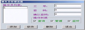 錄音查詢軟件具有多級(jí)口令保護(hù),可為不同層次的管理人員查詢提供方便和保護(hù),不同用戶僅能進(jìn)行所屬范圍的操作,只有最高級(jí)用戶才能使用所有功能,每級(jí)用戶都可隨時(shí)更改其口令。