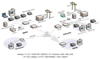 只需要簡(jiǎn)單地將NBX 100系統(tǒng)和計(jì)算機(jī)接入以太局域網(wǎng),就可以構(gòu)成一個(gè)簡(jiǎn)單而統(tǒng)一的網(wǎng)絡(luò)體系。
