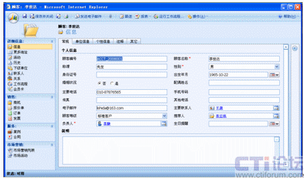 下圖是客戶來電時CRM系統(tǒng)中客戶資料的彈出: