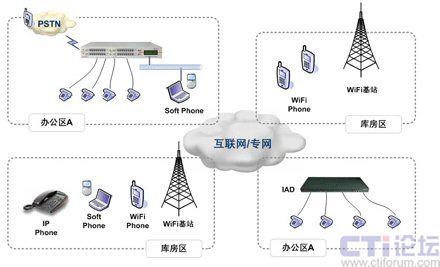 隨著北京西南物流中心業(yè)務(wù)的不斷發(fā)展,其庫區(qū)在不斷落成,倉儲面積仍不斷擴大。由于各個庫區(qū)及辦公樓都具有無線Mesh網(wǎng)絡(luò)覆蓋,西南物流中心在現(xiàn)有無線網(wǎng)絡(luò)基礎(chǔ)上陸續(xù)開展企業(yè)信息化業(yè)務(wù)。由于各個庫房與辦公樓之間都有一定距離,因為在中心的通信成本構(gòu)成中,內(nèi)部業(yè)務(wù)部門之間的溝通占據(jù)了絕對的比重,經(jīng)常居高不下的通信成本嚴重制約了北京西南物流中心業(yè)務(wù)的發(fā)展,于是,現(xiàn)實的溝通需求與高昂的通信成本之間的矛盾開始凸現(xiàn),內(nèi)部語音通信就成為了西南物流中心需要解決的首要任務(wù)之一。
