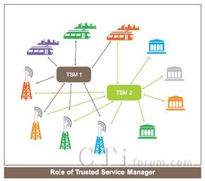 可信服務(wù)管理 (TSM)為復(fù)雜的、有眾多參與者的NFC生態(tài)系統(tǒng)帶來(lái)的穩(wěn)定性及可預(yù)見(jiàn)性。其核心作用是分配和管理各個(gè)服務(wù)提供商的應(yīng)用。它是移動(dòng)運(yùn)營(yíng)商、銀行和公交公司的一個(gè)共同的聯(lián)絡(luò)點(diǎn)。對(duì)移動(dòng)NFC應(yīng)用進(jìn)行安全下載和生命周期管?尚欧⻊(wù)管理必須贏得參與各方的信任才能完成這一任務(wù)。