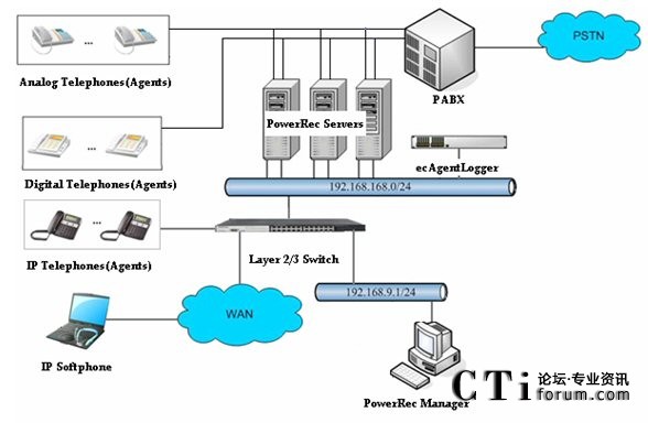 該系統(tǒng)采用三匯軟件VOIP錄音解決方案,交換機采用AVAYA S8730交換機,9620、9630IP話機。