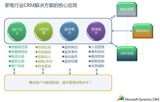 Techsun家電行業(yè)CRM解決方案基于Microsoft Dynamics CRM這一優(yōu)秀平臺,實現(xiàn)了對客戶、渠道資源的統(tǒng)一客戶,對銷售、市場、服務職能的全面支持,滿足了復合渠道整合的管理需求。Microsoft Dynamics CRM基于SOA架構,具有易集成的特點,滿足了家電行業(yè)多種復雜異構系統(tǒng)的集成需求。