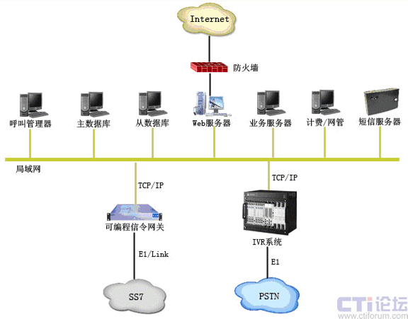 可編程信令網關: 通過E1接入SS7信令網,專門負責七號信令的處理;