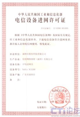 CTI論壇(ctiforum)05月15日消息: 日前從深圳市震有科技有限公司傳出消息,公司自主研發(fā)的NuBiz NC5200 IP電話網(wǎng)關(guān)設(shè)備順利通過工業(yè)和信息化部電信設(shè)備認證中心的審核,取得“電信設(shè)備進網(wǎng)許可證”。此舉標志著震有科技的NuBiz交換產(chǎn)品已成功取得進入國家電信網(wǎng)的資質(zhì),為大規(guī)模電信級推廣應(yīng)用打下了基礎(chǔ)。