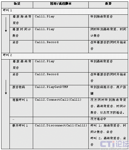 假設:2個呼叫分別作自己的放音和錄音,2個呼叫連接后通話,然后連接取消。