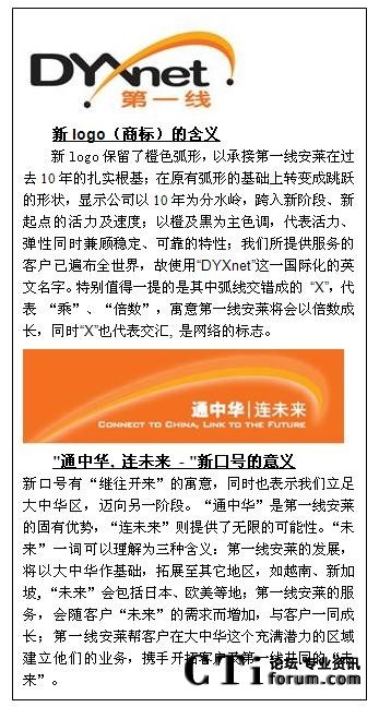 CTI論壇(ctiforum)08月20日消息: 知名網(wǎng)絡(luò)服務(wù)商第一線安萊,十年間憑借經(jīng)驗(yàn)豐富的團(tuán)隊(duì),靈活的服務(wù)、可靠的網(wǎng)絡(luò)系統(tǒng)等,遙遙領(lǐng)先于眾多競(jìng)爭(zhēng)對(duì)手,傲然屹立于大中華地區(qū)。目前,正值第一線安萊十周年慶之際,全新的企業(yè)商標(biāo)和“通中華.連未來(lái)”的新口號(hào)也向大眾展示。公司提出將幫助客戶實(shí)現(xiàn)“立足大中華,拓展全世界”的愿景。