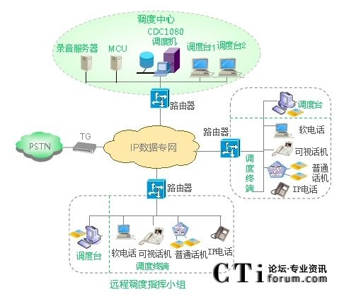 A. IP調(diào)度機(jī):是整個(gè)系統(tǒng)的核心,調(diào)度臺(tái)和調(diào)度終端都必須連接到IP調(diào)度機(jī)才能夠正常工作。