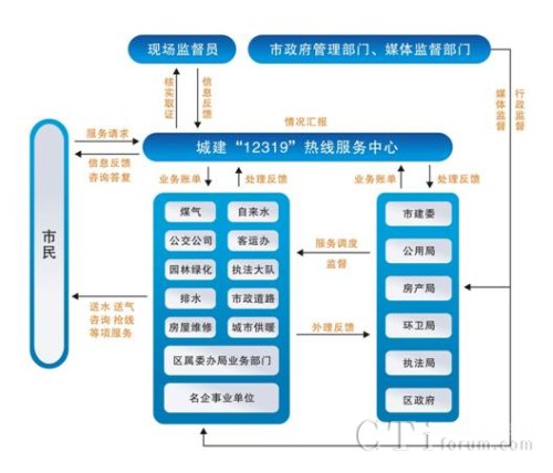 - 各城管系統(tǒng)都設(shè)立專門機(jī)構(gòu)直接與熱線中心聯(lián)系,即時(shí)處理服務(wù)中心轉(zhuǎn)來的各類問題,實(shí)現(xiàn)“市民→熱線中心→責(zé)任單位→市民”的閉路循環(huán),做到受理及時(shí)、反應(yīng)快速、處理到位, 使 12319 熱線成為密切政府與群眾關(guān)系、 創(chuàng)建行業(yè)服務(wù)品牌的一項(xiàng)重要舉措。