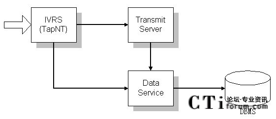 后臺程序使用Data Service 作為數(shù)據(jù)庫中間插件,TapNt(IVR)負(fù)責(zé)運行流程。TapNt(IVR)查詢數(shù)據(jù)要通過Data Service來進行。這項設(shè)置的目的在于使數(shù)據(jù)插件得到充分利用。當(dāng)話務(wù)量增多時,可以多開幾個Data