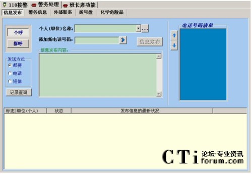 通過數(shù)字中繼(或模擬中繼)同公網(wǎng)相連,實(shí)現(xiàn)接收110/122/119數(shù)字報(bào)警、對(duì)派出所(消防中隊(duì)、交警中隊(duì))及重點(diǎn)保衛(wèi)單位的專線調(diào)度、內(nèi)部用戶的交換等功能。具有排隊(duì)、調(diào)度、交換、中繼合群使用,錄音錄時(shí)回放,誤報(bào)攔截,惡意呼叫鎖定、二級(jí)接警處警、組呼、選呼、重呼、強(qiáng)插、強(qiáng)拆、監(jiān)聽、教練等功能。