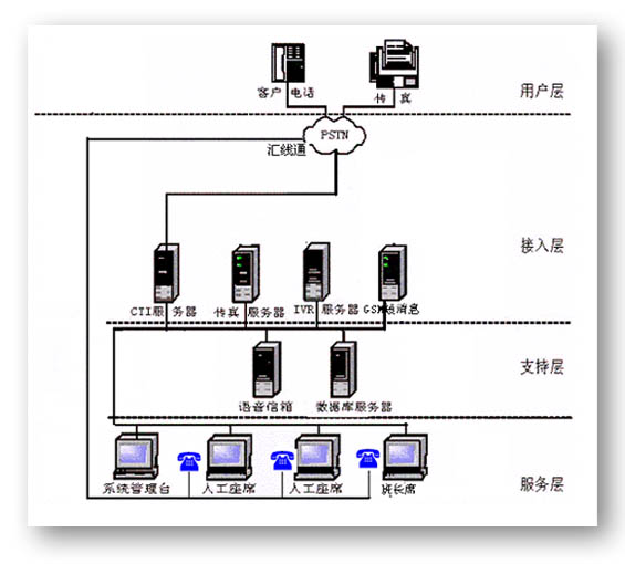 可以支持:話音、傳真、郵件、Email、短信等接入方式。