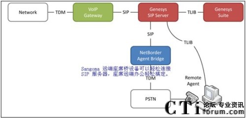 呼叫中心的蓬勃發(fā)展帶動了呼叫中心廠家投入巨資開發(fā)呼叫中心最核心的功能,例如拓展呼叫中心的接入,座席的管理,洗號系統(tǒng)。除了支持Asterisk,F(xiàn)reeswitch平臺的高并發(fā)A116 16E1做為高并發(fā)呼叫中心以外,Sangoma早在2004 年就開始和世界知名呼叫中心廠家Genesys 合作,開發(fā)了呼叫中心的洗號系統(tǒng),遠(yuǎn)端座席管理,PSTN 接入等強(qiáng)大的工具,從而提高了大型呼叫中心的接通率和座席管理的靈活性。Sangoma 通過genesys 兼容性測試,完全兼容Genesys 呼叫中心平臺。NetBorder 系統(tǒng)架構(gòu)如下: