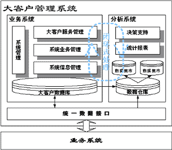 HollyAnalyzer是建立在大客戶信息平臺基礎(chǔ)上的針對業(yè)務(wù)主題、面向決策支持的系統(tǒng)。將數(shù)據(jù)倉庫的相關(guān)技術(shù)引入,利用數(shù)據(jù)分析系統(tǒng),從基于客戶數(shù)據(jù)及企業(yè)業(yè)務(wù)活動的歷史記錄中提煉出有用的信息產(chǎn)生標準的查詢報告,進行大客戶分析和市場營銷的輔助決策支持。分析主題主要針對客戶、競爭對手和營業(yè)及收入進行分析,這些數(shù)據(jù)是企業(yè)非常關(guān)心的信息,有助于企業(yè)借助積累的歷史數(shù)據(jù),對其業(yè)務(wù)運營狀況及營銷活動成效做出正確的評價,了解客戶行為及其趨向。