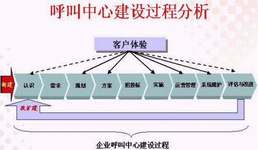 從以上的過程分析來看,無論新建或改擴建,企業(yè)都需要學(xué)習(xí)呼叫中心理念并加強認識、經(jīng)過可行性研究、現(xiàn)狀評估整理出需求、進行呼叫中心的戰(zhàn)略規(guī)劃、設(shè)計建設(shè)方案、進行招投標(biāo)確定系統(tǒng)集成商、考慮項目實施策略和方法、建立或改進運營管理和系統(tǒng)維護的體系等。