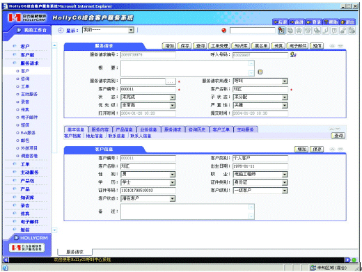 HollyC&C是HollyC6呼叫中心解決方案中蘊(yùn)涵CRM基礎(chǔ)理念的業(yè)務(wù)應(yīng)用軟件產(chǎn)品。HollyC&C提供全面的呼叫中心系統(tǒng)功能,完成“以客戶中心”的服務(wù)請求-> 業(yè)務(wù)處理(咨詢、投訴、基本業(yè)務(wù)受理)-> 客戶基本資料管理 -> 主動服務(wù)(回訪、滿意度調(diào)查、電話營銷),全部的CRM閉環(huán)處理流程,全程的服務(wù)痕跡得到保留,并提供完善的統(tǒng)計報表進(jìn)行數(shù)據(jù)分析, 。