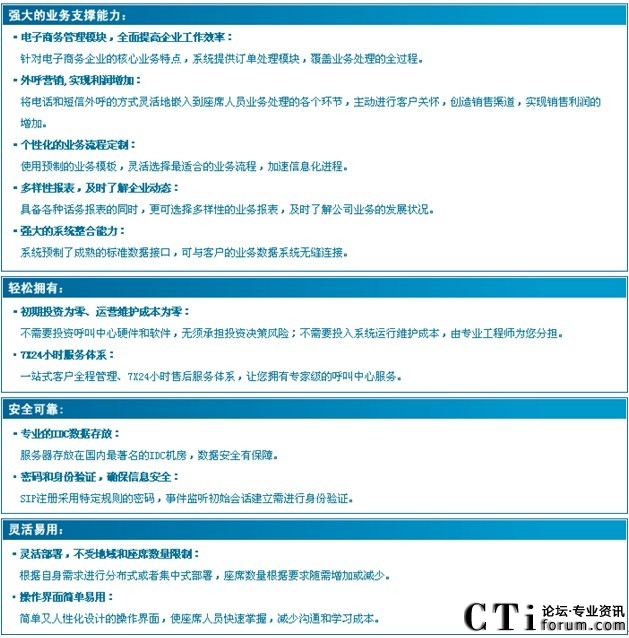 - 全面電子商務(wù)業(yè)務(wù)管理模塊,實現(xiàn)呼叫中心與業(yè)務(wù)的完美結(jié)合;