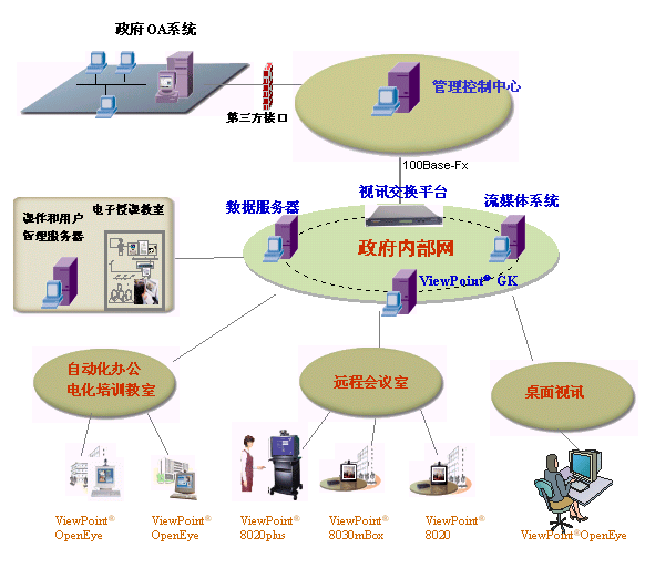 “視點通”ViewPoint®8000綜合視訊系統(tǒng)可以滿足不同領(lǐng)域用戶的多種視訊業(yè)務(wù)需求:遠(yuǎn)程教學(xué)、異地會商、遠(yuǎn)程醫(yī)療、應(yīng)急通信、軍事會議、遠(yuǎn)程監(jiān)控、遠(yuǎn)程調(diào)度、會議出租、家庭應(yīng)用等。