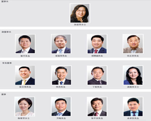 年報(bào)顯示,2010年底,華為全體持股員工投票選舉產(chǎn)生了51名持股員工代表,并由這51名持股員工代表于2011年1月選舉出新一屆的董事會(huì)和監(jiān)事會(huì)成員。新一屆董事會(huì)成員為孫亞芳、郭平、徐直軍、胡厚崑、任正非、徐文偉、李杰、丁耘、孟晚舟、陳黎芳、萬(wàn)飚、張平安、余承東;監(jiān)事會(huì)成員為梁華、彭智平、任樹(shù)錄、田峰、鄧飚。這也是華為首次披露所有董事會(huì)、監(jiān)事會(huì)成員名單、簡(jiǎn)歷和照片。