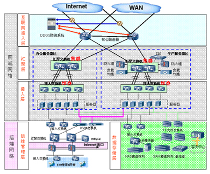 所以,按照模塊化的設計思想,設計的模塊不能太大,也不能太小。采用成熟,先進的技術構建網絡,既適應了公司業(yè)務增長需求,又避免了新技術造成的風險和成本。