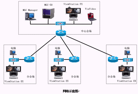 根據(jù)需求及網(wǎng)絡(luò)情況,我們?yōu)樘窖蟊kU(xiǎn)建設(shè)基于系統(tǒng)內(nèi)部Intranet的基于H.323標(biāo)準(zhǔn)的視頻會(huì)議系統(tǒng)。系統(tǒng)以1個(gè)MCU(多點(diǎn)控制單元)為中心,包括1個(gè)主會(huì)場,13個(gè)分會(huì)場,10個(gè)個(gè)人桌面系統(tǒng)。