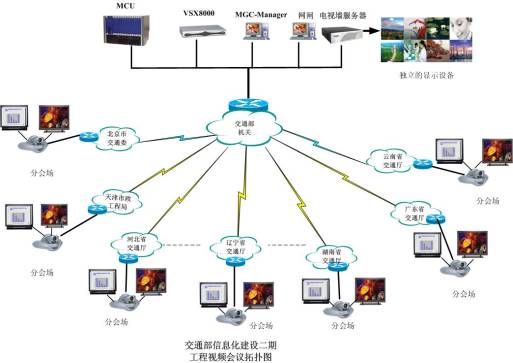視頻通訊作為網(wǎng)絡時代出現(xiàn)的新型通訊方式,它的數(shù)據(jù)和圖像傳送功能是傳統(tǒng)會議不可取代的。當前交通系統(tǒng)對工作效率和工作質量要求在不斷提高,而傳統(tǒng)的工作交流方式以及不完善的信息化建設制約了交通部信息化的發(fā)展,不能滿足行業(yè)管理和發(fā)展的需要,也不能滿足交通公共信息為社會公眾、企事業(yè)單位服務的需要。因此急需建設一個完善的、現(xiàn)代化的視頻會議系統(tǒng)。交通系統(tǒng)視頻通訊要求在交通系統(tǒng)專業(yè)網(wǎng)絡資源上實現(xiàn)構建交通部到各一類節(jié)點的高質量、高可靠性視頻通訊系統(tǒng)。系統(tǒng)建設中充分利用現(xiàn)有系統(tǒng)資源;系統(tǒng)中集成圖像傳輸、數(shù)據(jù)共享等多種功能。系統(tǒng)能夠實現(xiàn)平滑擴容和升級,將來能夠向更高帶寬和更高圖像質量擴展。綜上,交通部的視頻會議系統(tǒng)的建設目標為:“一個全國統(tǒng)一規(guī)劃的視頻通訊系統(tǒng),實現(xiàn)交通部與各一類節(jié)點的實時互通!