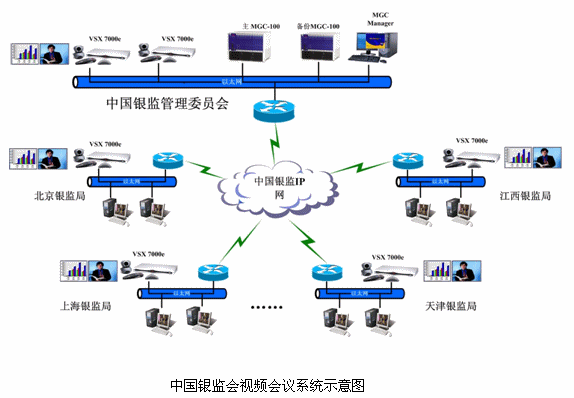 中國銀監(jiān)會(huì)目前已經(jīng)擁有一個(gè)高速、高可靠性的ATM骨干傳輸網(wǎng)絡(luò),網(wǎng)絡(luò)采用星形結(jié)構(gòu),各分支機(jī)構(gòu)到北京總部的線路均為2條15M ATM線路,這種優(yōu)良的網(wǎng)絡(luò)非常適合視頻會(huì)議業(yè)務(wù)的運(yùn)營。視頻會(huì)議網(wǎng)建立完成后可以實(shí)現(xiàn)通過遠(yuǎn)程視頻會(huì)議,遠(yuǎn)程處理重點(diǎn)銀行業(yè)金融機(jī)構(gòu)監(jiān)事會(huì)的日常管理工作;遠(yuǎn)程審查銀行業(yè)金融機(jī)構(gòu)高級(jí)管理人員任職資格;遠(yuǎn)程討論協(xié)商制定有關(guān)銀行業(yè)金融機(jī)構(gòu)監(jiān)管的規(guī)章制度和辦法;遠(yuǎn)程對(duì)銀行業(yè)金融機(jī)構(gòu)實(shí)監(jiān)管,依法對(duì)違法違規(guī)行為進(jìn)行查處;更加可以通過遠(yuǎn)程雙流會(huì)議,按照國家有關(guān)規(guī)定,遠(yuǎn)程公布全國銀行數(shù)據(jù)、報(bào)表。