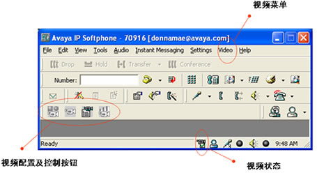 安裝了視頻集成的Avaya IP軟電話會提供相應(yīng)的視頻配置菜單、視頻配置和控制案鈕及視頻狀態(tài)指示。集成視頻的IP軟電話之間可以直接進(jìn)行點(diǎn)對點(diǎn)視頻和語音通訊,同時也可以和內(nèi)置多點(diǎn)功能的Polycom