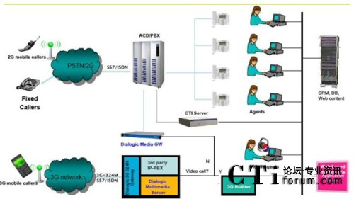 如何打開這扇門?林克海德愿意協(xié)助您一起完成這項工作,基于Dialogic產(chǎn)品的全力支持,您可以實現(xiàn)web頁面到3G手機的視頻轉(zhuǎn)換,也可以與舊有的傳統(tǒng)呼叫中心(2G)互聯(lián)互通。您可以通過3G手機打到Dialogic視頻網(wǎng)關,再通過3G Bridge與web server連接,3G Bridge起的主要作用就是把web上的http轉(zhuǎn)換成RTP\RTSP文件,這樣就完成了web與3G手機的互動,同樣的,如果您想和傳統(tǒng)的呼叫中心互聯(lián)互通,只需要用Dialogic的媒體服務器做連接,就可以把3G與2G 的平臺連接到一起。