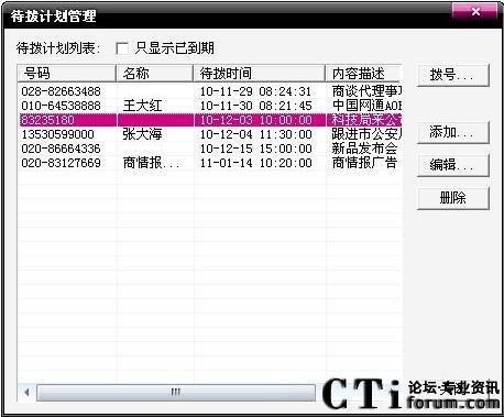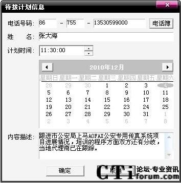A8電腦傳真機的通話記錄和通話歷史讓您記住過去,來電彈屏和自動答錄助您處理現(xiàn)在,待撥計劃和到時提醒則幫您安排未來。點擊電話商務通主界面中的待撥計劃按鈕,出現(xiàn)您未來將要撥出電話的日程安排,您可以對其進行添加、編輯和刪除等操作。時間一到A8電腦傳真機會自動彈屏提醒,待撥計劃中的電話一經(jīng)撥出,A8會自動刪除該電話號碼。