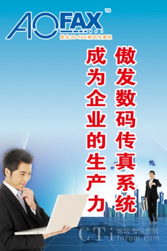 CTI論壇(ctiforum)4月24日消息(記者 歐陽(yáng)): 經(jīng)濟(jì)發(fā)展外圍形式嚴(yán)峻,經(jīng)濟(jì)增速放緩,人工、生產(chǎn)成本高位運(yùn)行,部分企業(yè)效益大幅降低。那么,中小企業(yè)如何提高自身的競(jìng)爭(zhēng)力呢?作為企業(yè)辦公通信必不可少的設(shè)備,電子傳真機(jī)、數(shù)碼傳真機(jī)、無(wú)紙傳真機(jī)、網(wǎng)絡(luò)傳真機(jī)、電腦傳真機(jī)、傳真卡、傳真群發(fā)器、傳真服務(wù)器等新型電腦傳真系統(tǒng)的迅速熱銷,也能助企業(yè)一臂之力,由金恒科技(深圳)有限公司推出的傲發(fā)3G-FAX(AOFAX)系列電子傳真和傳真服務(wù)器產(chǎn)品是其中的佼佼者,占據(jù)著新型傳真市場(chǎng)的大半江山,受到廣大消費(fèi)者的一致好評(píng)。