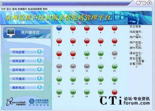 2.在線監(jiān)聽(tīng)——監(jiān)管員在監(jiān)控終端可以使用電話監(jiān)聽(tīng)某個(gè)犯人的通話聲音。監(jiān)聽(tīng)的時(shí)候需要先接通電話;