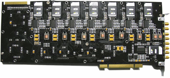 板卡側(cè)面引出4或8個天線接口。使用時,將天線延長線與之擰上固定。