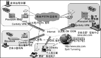 隧道及企業(yè)中心,加重了網(wǎng)絡(luò)的負擔。2、通過Contivity 的Split Tunneling 的機制,使遠程/移動辦公室用戶及遠程移動用戶可以不經(jīng)過IPSEC