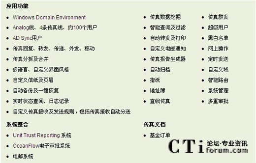 大新銀行Information Technology Division 項(xiàng)目經(jīng)理Benjamin Chu指出:“OceanFax Fax Server具有全面而強(qiáng)大的功能,支持電子傳真及自動(dòng)傳真,系統(tǒng)易使用和管理;通過與Unit Trust Reporting系統(tǒng)及OceanFlow電子審批系統(tǒng)的整合,理順大新銀行投資基金業(yè)務(wù),實(shí)現(xiàn)工作的自動(dòng)流程。該整合能提高效率、降低成本、保證信息安全及快速帶來投資回報(bào)!