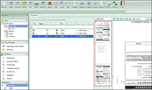- Users can have an overview of multiple fax images by simply clicking "Thumbnails" in the Reading Pane.