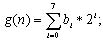 對數(shù)據(jù)作”值的轉換”的方法,其意思為:對要加密的檔案中的每一筆數(shù)據(jù),對它的內(nèi)容值作轉換。舉例而言,如果要加密的數(shù)據(jù)為一個圖文件,則此方法會對每一個像素作處理,并改變每一個像素的值。首先,其對每一個字節(jié)(byte)的值,拆開成為binary的形式,如式(1.1)所示,其中g(n)表示要加密檔案中的一個字節(jié),其中n=0,