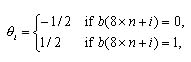 在將g(n)拆成binary形式之后,方法[8]再對每一個位bi的值作改變,其中0≦i≦7。而其對每一個位bi值作改變的方法如式(1.2)所示,而b’i代表的為bi被改變之后的值。