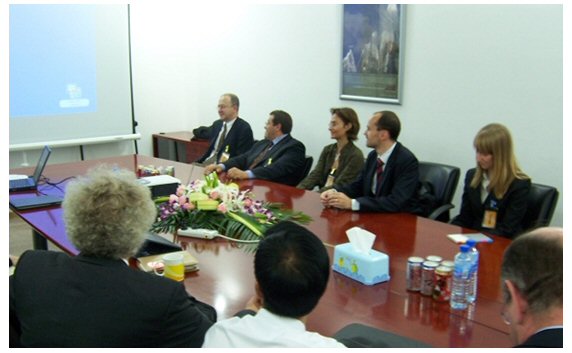 5月31日,來滬參加“中歐信息通訊技術合作研討會”的歐盟信息通訊技術代表團在研討會結束之后,來到并參觀了位于市北工業(yè)園區(qū)內的賽科斯信息技術(上海)有限公司。代表團的來訪受到了賽科斯(中國)高度重視和友好、熱情的接待。
