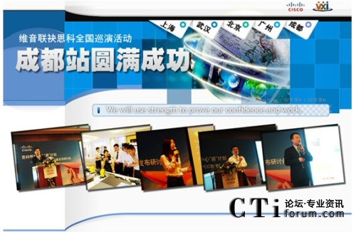 CTI論壇(ctiforum)7月19日消息(記者 潘婷婷): 2010年7月13日,思科與維音攜手的呼叫中心“易”計(jì)劃在天府之城成都進(jìn)行了隆重的產(chǎn)品發(fā)布會(huì),來(lái)自成都的各大企業(yè)及行業(yè)專(zhuān)家都參加了此會(huì),其中包括來(lái)自中國(guó)移動(dòng)、中國(guó)電信、平安車(chē)險(xiǎn)等企業(yè)。