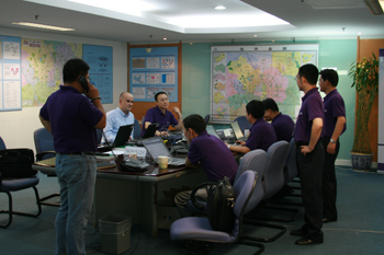 上海貝爾阿爾卡特工程師與客戶工作人員共同在原北京網通網管中心值守