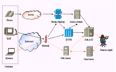 FineSupportIP Contact Center基于先進(jìn)的LodeSoft iAfx體系架構(gòu),完全統(tǒng)一來自電話和Internet的客戶服務(wù)請(qǐng)求。來自PSTN的電話語(yǔ)音首先經(jīng)由媒體網(wǎng)關(guān)轉(zhuǎn)換為IP電話數(shù)據(jù)流,具有完全分布式特性,能夠幫助江蘇網(wǎng)通實(shí)現(xiàn)多點(diǎn)的、虛擬統(tǒng)一的客戶服務(wù)中心的目標(biāo);其基于VoIP技術(shù)的軟件ACD(自動(dòng)呼叫分配器)根據(jù)呼叫類型、服務(wù)人員忙閑狀態(tài)、可定制的分配策略進(jìn)行呼叫分配;基于Voice XML技術(shù)的IP-IVR單元,可以靈活地定義自動(dòng)語(yǔ)音服務(wù);系統(tǒng)另一顯著特點(diǎn)是系統(tǒng)遵循開放性原則,可集成第三方硬件和第三方業(yè)務(wù)軟件,使網(wǎng)通逐步實(shí)現(xiàn)統(tǒng)一、全面的客戶服務(wù)體系。