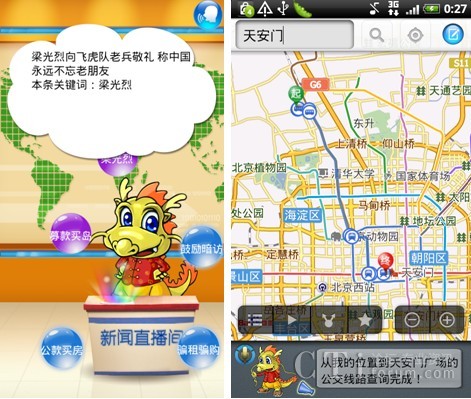 聰明、善解人意的小唐龍基于開(kāi)放的Android操作系統(tǒng),在捷通華聲全球首個(gè)全方位智能人機(jī)交互(HCI)感知云-靈云平臺(tái)的支持下,會(huì)學(xué)習(xí),善思考,能說(shuō)會(huì)聽(tīng),能寫會(huì)識(shí)。此次正式發(fā)布的小唐龍界面更加清新亮麗,令人耳目一新;獨(dú)一無(wú)二的語(yǔ)音與手寫全方位人機(jī)交互,讓用戶在任何情況下都可以無(wú)障礙的使用小唐龍;重新構(gòu)建設(shè)計(jì)的音樂(lè)播放的界面,增加歌詞顯示功能,讓用戶隨心所欲的添加、刪除、選擇、演唱歌曲;新聞播報(bào)清晰自然,流暢動(dòng)聽(tīng),新聞內(nèi)容更加豐富,讓天下大事隨時(shí)都掌握在用戶手中;地圖查詢實(shí)現(xiàn)全國(guó)范圍方便快捷的導(dǎo)航、公交查詢、餐飲服務(wù);全國(guó)地區(qū)天氣預(yù)報(bào)等功能的完善,給用戶的生活帶來(lái)的極大的便利。全新小唐龍讓手機(jī)助手之名更加名副其實(shí)!