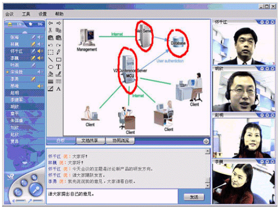 V2 Conference可以利用普通的PC機(jī)、標(biāo)準(zhǔn)的視頻攝像頭、耳機(jī)和麥克風(fēng),通過Internet或者是局域網(wǎng)進(jìn)行會(huì)議。與傳統(tǒng)的需要專用的服務(wù)器和硬件支持的視頻會(huì)議相比,企業(yè)無需投入高昂的成本,就可以實(shí)現(xiàn)高質(zhì)量的遠(yuǎn)程會(huì)議。同時(shí),V2 Conference還提供了遠(yuǎn)程會(huì)議管理的功能。