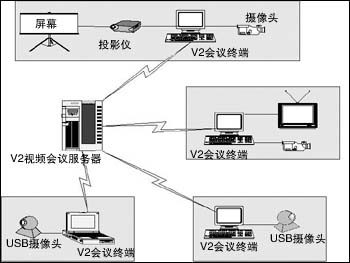 V2 Conference 視頻會議系統(tǒng)是基于MPEG-4標(biāo)準(zhǔn)的多媒體壓縮技術(shù),利用IP網(wǎng)絡(luò)開展視頻會議的軟件系統(tǒng)。在從56Kbps撥號到寬帶的網(wǎng)絡(luò)環(huán)境下,用戶利用V2 Conference視頻會議平臺,通過配備普通的PC機、標(biāo)準(zhǔn)的音視頻采集和輸出設(shè)備,就可以實現(xiàn)基于Intranet/Internet的虛擬會議。系統(tǒng)不僅可以提供流暢的語音,而且提供清晰流暢的視頻圖像。與傳統(tǒng)的基于硬件的解決方案相比,V2 Conference 是純軟件解決方案。用戶無需投入高昂的成本,就能夠?qū)崿F(xiàn)高質(zhì)量、高可靠性的音視頻通訊、協(xié)同工作、文檔共享、遠程會議管理等多種會議功能,有效地節(jié)約時間和經(jīng)費,提高企業(yè)的工作效率。